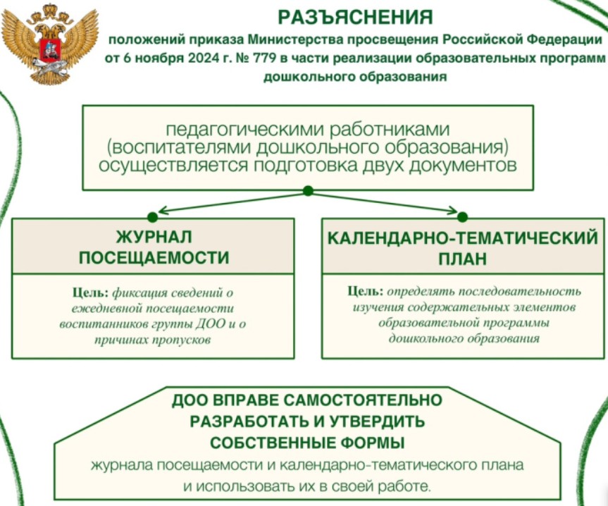 Разъяснения положений приказа Министерства просвещения Российской Федерации от 6 ноября 2024 г. № 779 в части реализации образовательных программ дошкольного образования